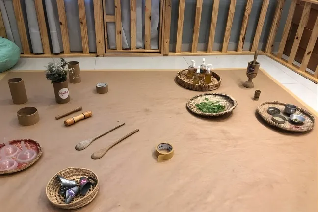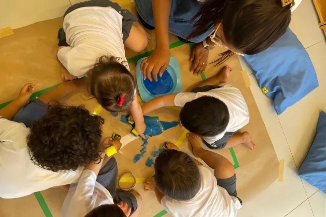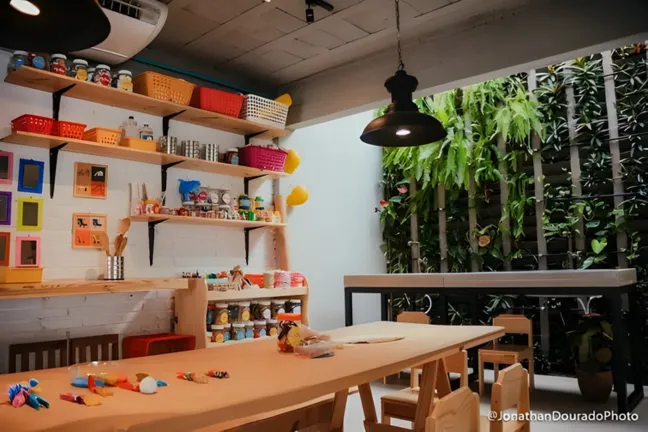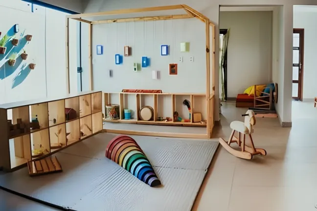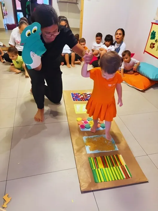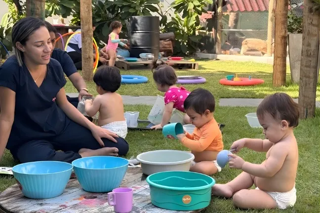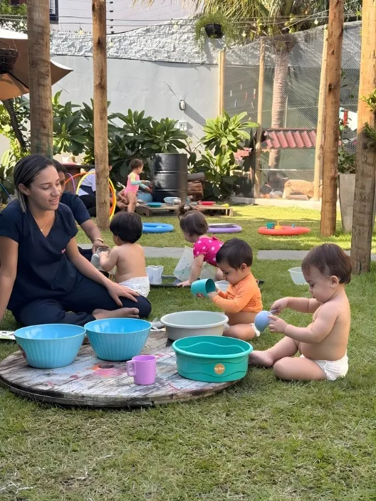 É uma escola estruturada para crianças de 0 a 5 anos, com atividades sensoriais, motoras e lúdicas que estimulam o desenvolvimento integral.