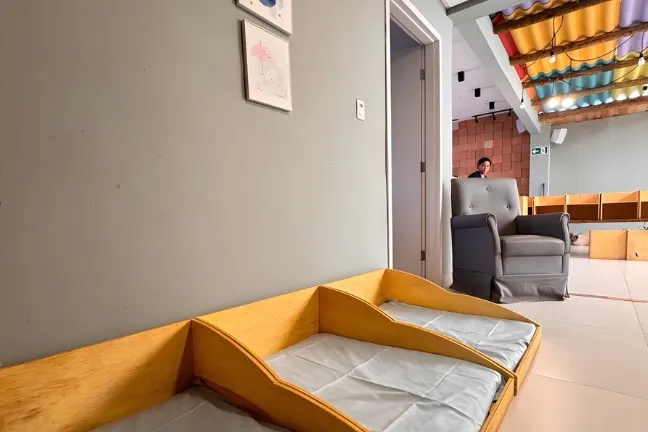 Salas e áreas externas pensadas para promover estimulação sensorial, autonomia e vínculos seguros entre crianças e cuidadores.
